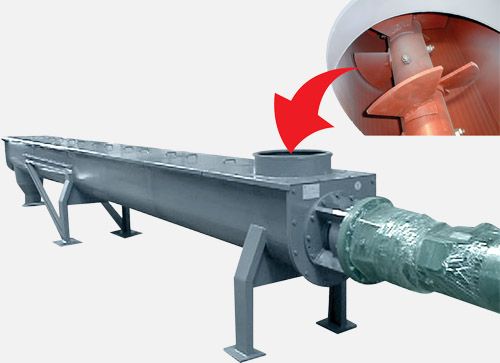 該螺旋輸送機采用特殊的葉片形式及一體式螺旋體,中間無吊懸掛裝置,充分保證輸送混凝土時的連續性及可靠性,不會產品卡死、堵料等情況。