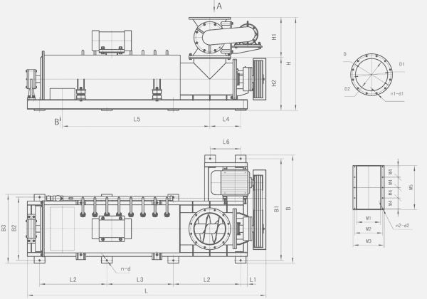 該機(jī)由主體、電控柜、主傳動(dòng)、上卸料機(jī)、螺旋輸料機(jī)、多柱式線性攪拌器、振動(dòng)器、及多管噴淋裝置等部分組成。整機(jī)體固定在由槽鋼焊接制作的機(jī)座上,輸送拌料主筒體由四組彈性元件支撐,與機(jī)座傳動(dòng)裝置軟性密封連接,主筒頂部固定座上安裝振動(dòng)電機(jī),通過振動(dòng)裝置,使主筒體產(chǎn)生同步幅度振蕩。主機(jī)減速裝置采用皮帶緩沖減速傳動(dòng)機(jī)構(gòu),徹底杜絕悶車,堵轉(zhuǎn)現(xiàn)象,減少停機(jī)清理時(shí)間,提高工作效率。